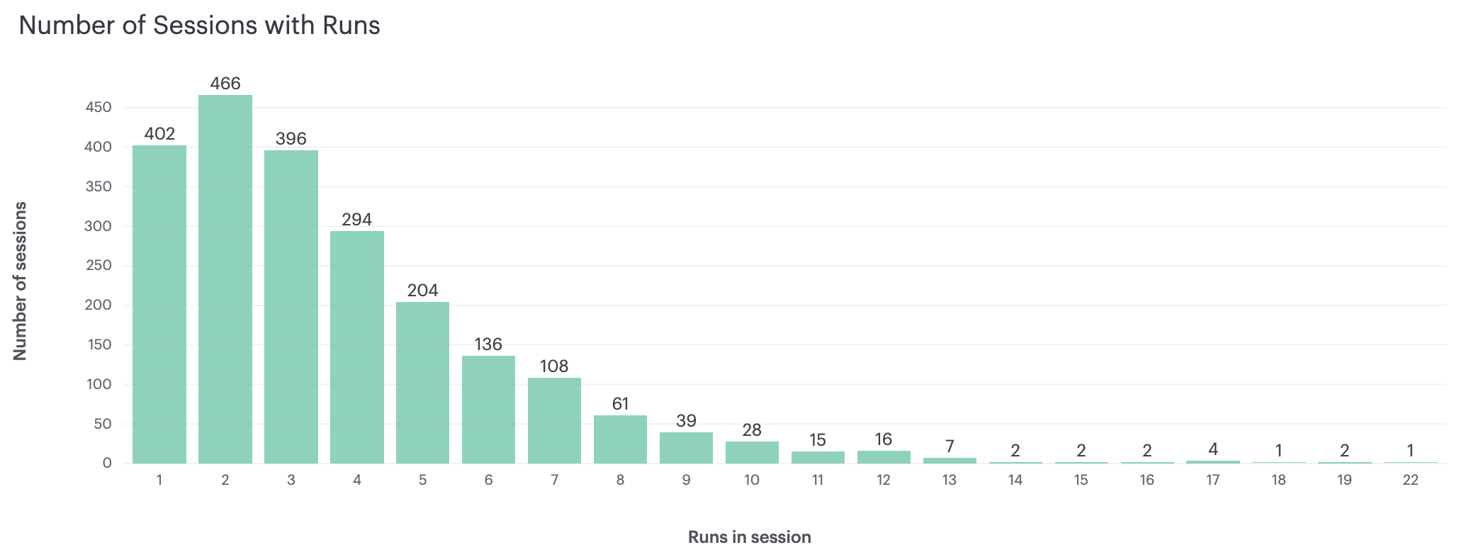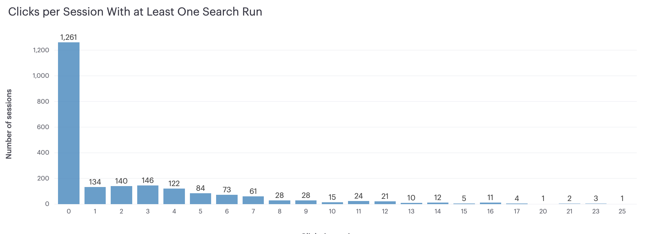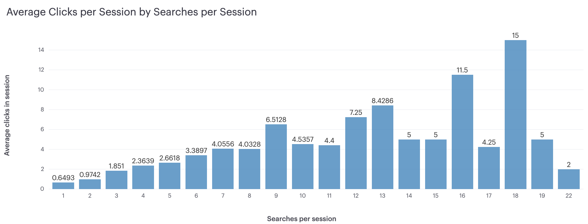 Furthermore, more searches in a given session do not lead to many more clicks, on average: